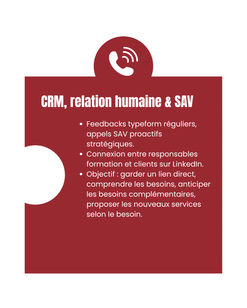 Cible : Nouveaux clients en formation + anciens clients susceptibles de suivre des modules complémentaires.